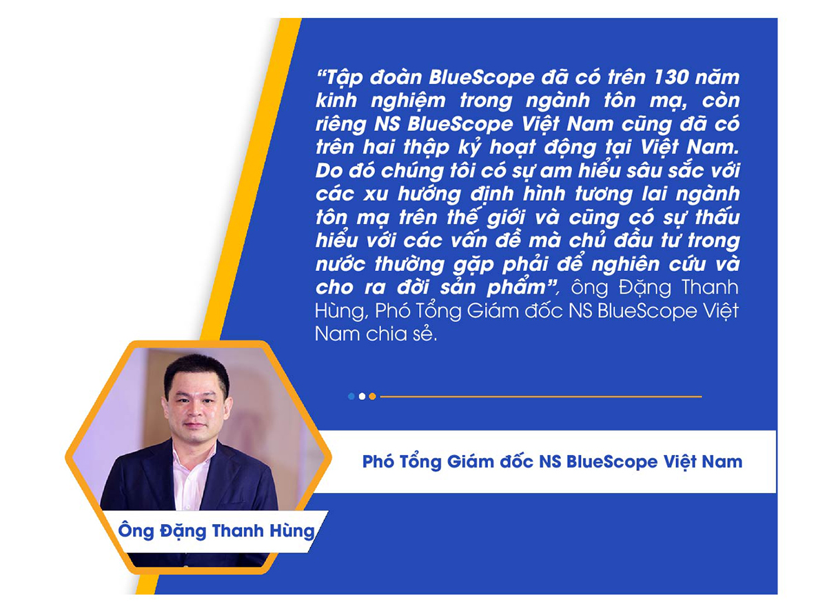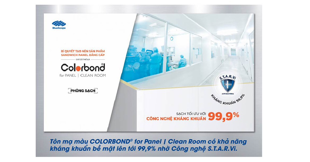 Ra mắt sản phẩm trong tháng 6-2022, NS BlueScope Việt Nam đã đem lại một cuộc cách mạng trong phân khúc sandwich panel khi phát triển dòng tôn mạ chuyên biệt đầu tiên trên thị trường cho ứng dụng sandwich panel phòng sạch: tôn mạ màu COLORBOND® for Panel | Clean Room.