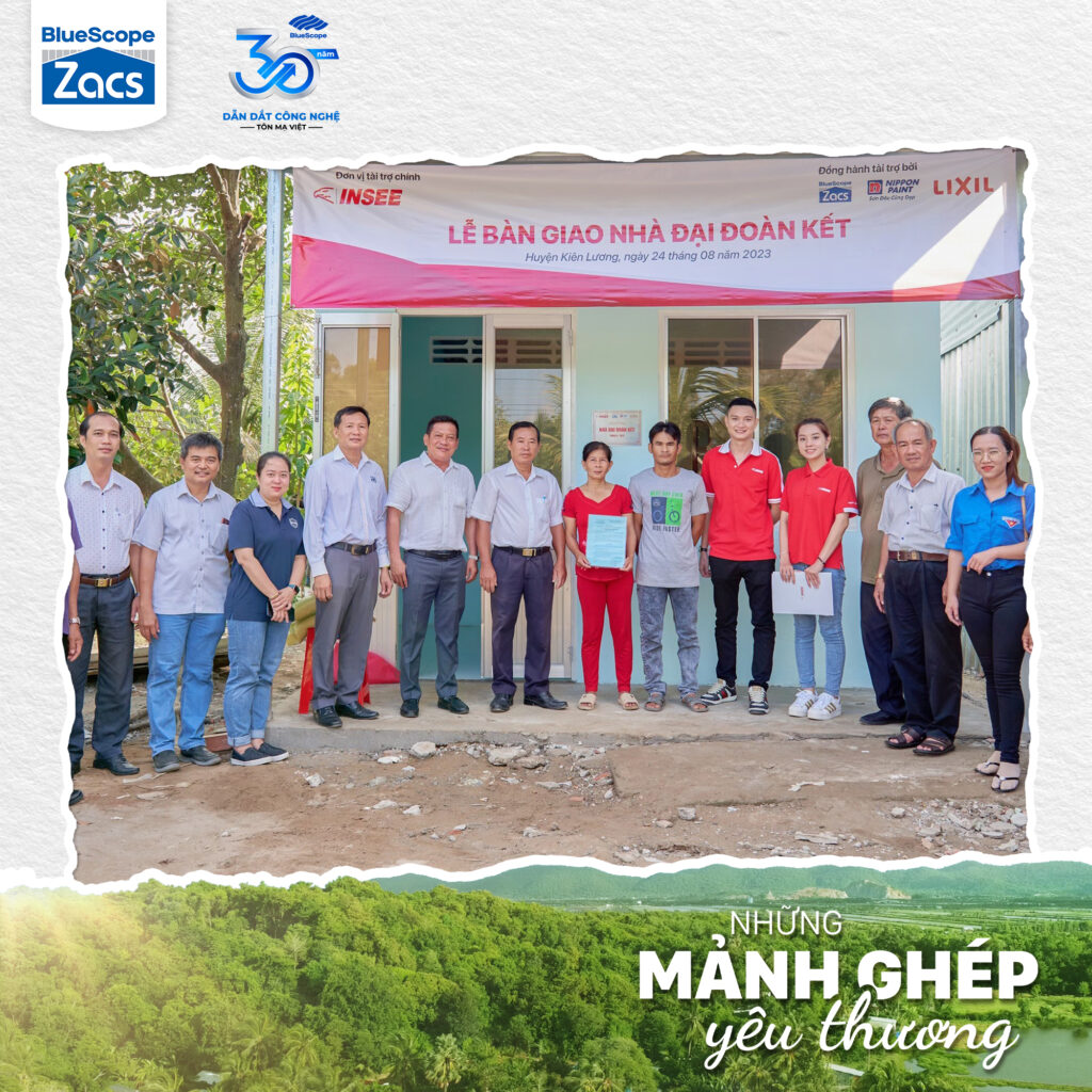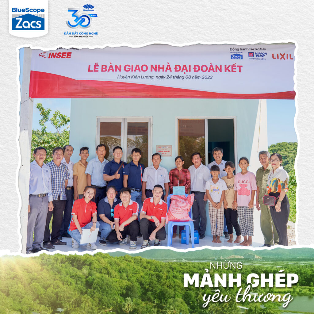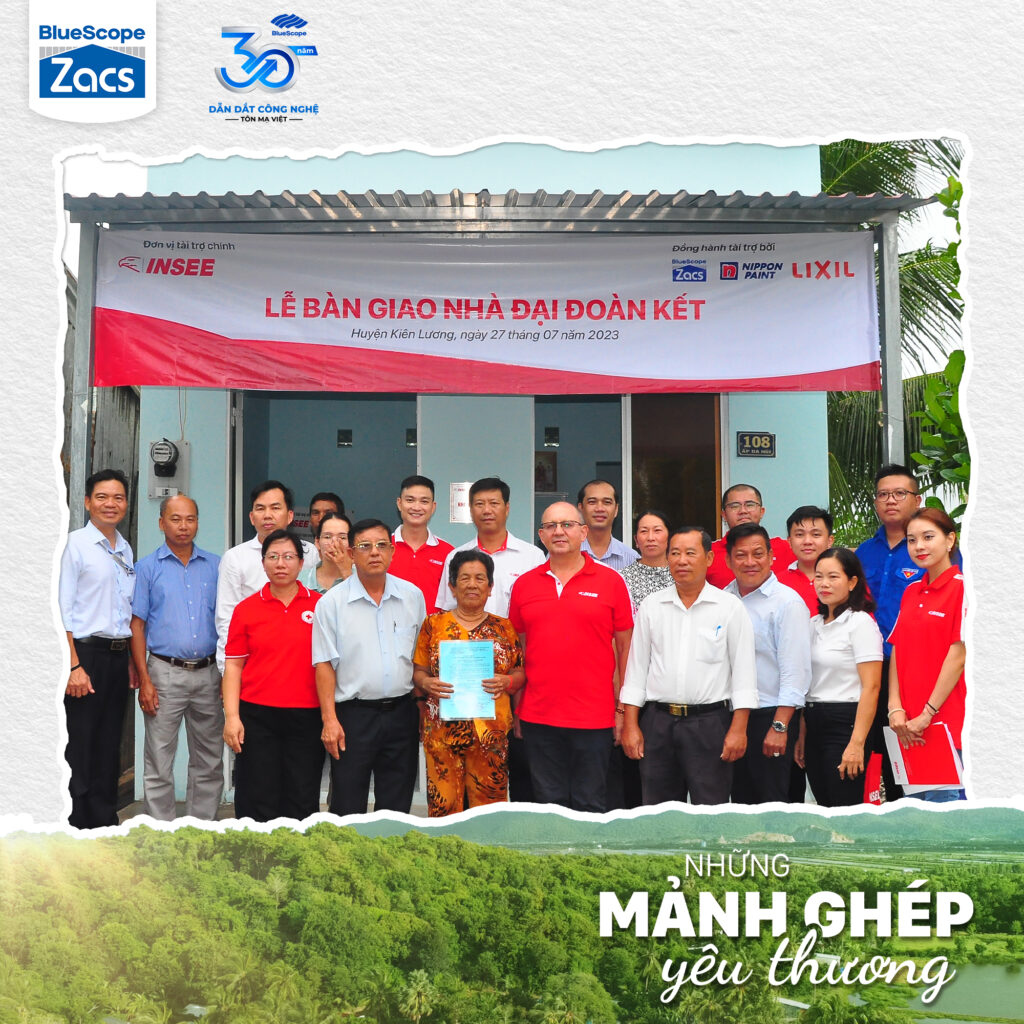 🏡 Năm nay, BlueScope đồng hành cùng INSEE trong chương trình xây dựng ngôi nhà mới hoàn thiện cho 5 hộ gia đình có hoàn cảnh khó khăn tại Kiên Lương, Kiên Giang với hạng mục cung cấp tôn lợp cho mái nhà, cụ thể là Tôn Zacs®+ Hoa Cương INOK® 450, góp phần mang lại tổ ấm vững chắc cho người dân nơi đây, giúp họ có thêm nghị lực, an tâm lạc nghiệp và vững bước trong cuộc sống.