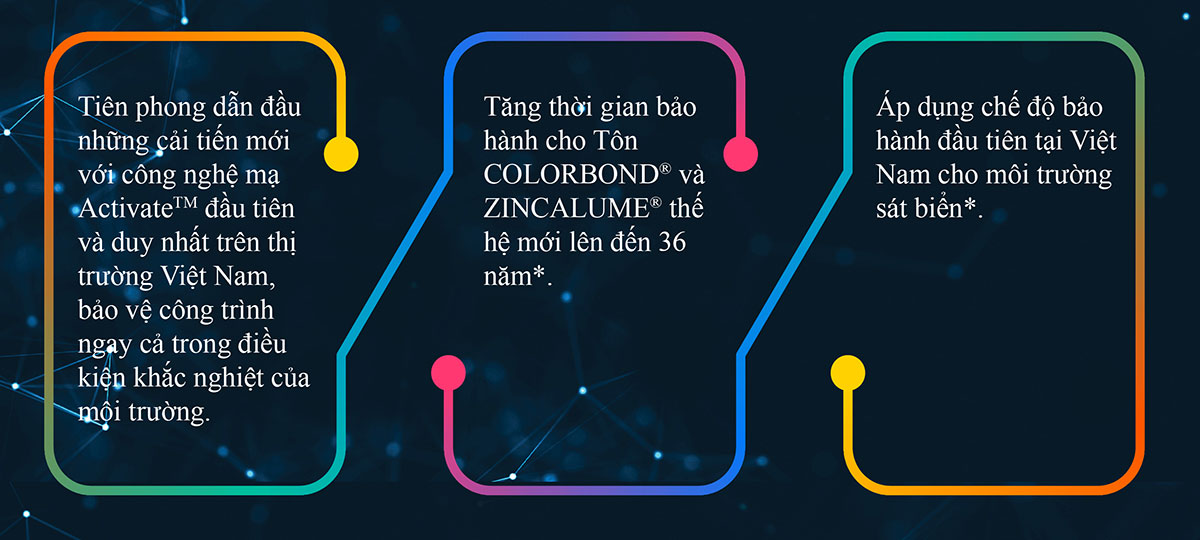 Bí quyết chống ăn mòn vượt trội của công nghệ ActivateTM nằm ở thành phần và vi cấu trúc Ma trận bốn lớp độc đáo tạo nên bốn rào cản bảo vệ thép nền. Vi cấu trúc ma trận bốn lớp này cho phép Tôn COLORBOND® và ZINCALUME® thế hệ mới có khả năng tự trám tại mép cắt, lỗ vít và vết trầy xước, từ đó chống ăn mòn cho mái và vách tôn, tăng tuổi thọ của công trình. Công nghệ ActivateTM đã được Tập đoàn BlueScope đăng ký trên 20 bằng sáng chế bảo hộ toàn cầu để bảo vệ quy trình công nghệ sản xuất và cấu trúc lớp mạ.