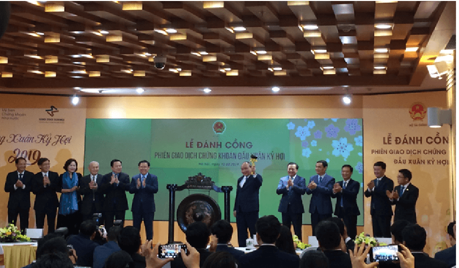 Ngày 12/2/2018 tức mồng 8 tết Kỷ Hợi, thị trường chứng khoán Việt đã có niềm vui lớn khi Thủ tướng Chính phủ Nguyễn Xuân Phúc đánh cồng khai trương phiên giao dịch đầu xuân.
