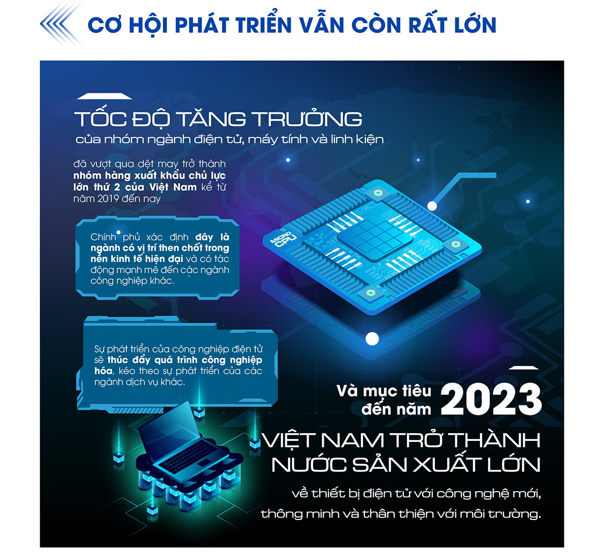 Thực tế, dù trải qua 3 năm ảnh hưởng bởi dịch bệnh, nhưng ngành điện tử Việt Nam vẫn giữ vững được tốc độ tăng trưởng cũng như kim ngạch xuất nhập khẩu.
