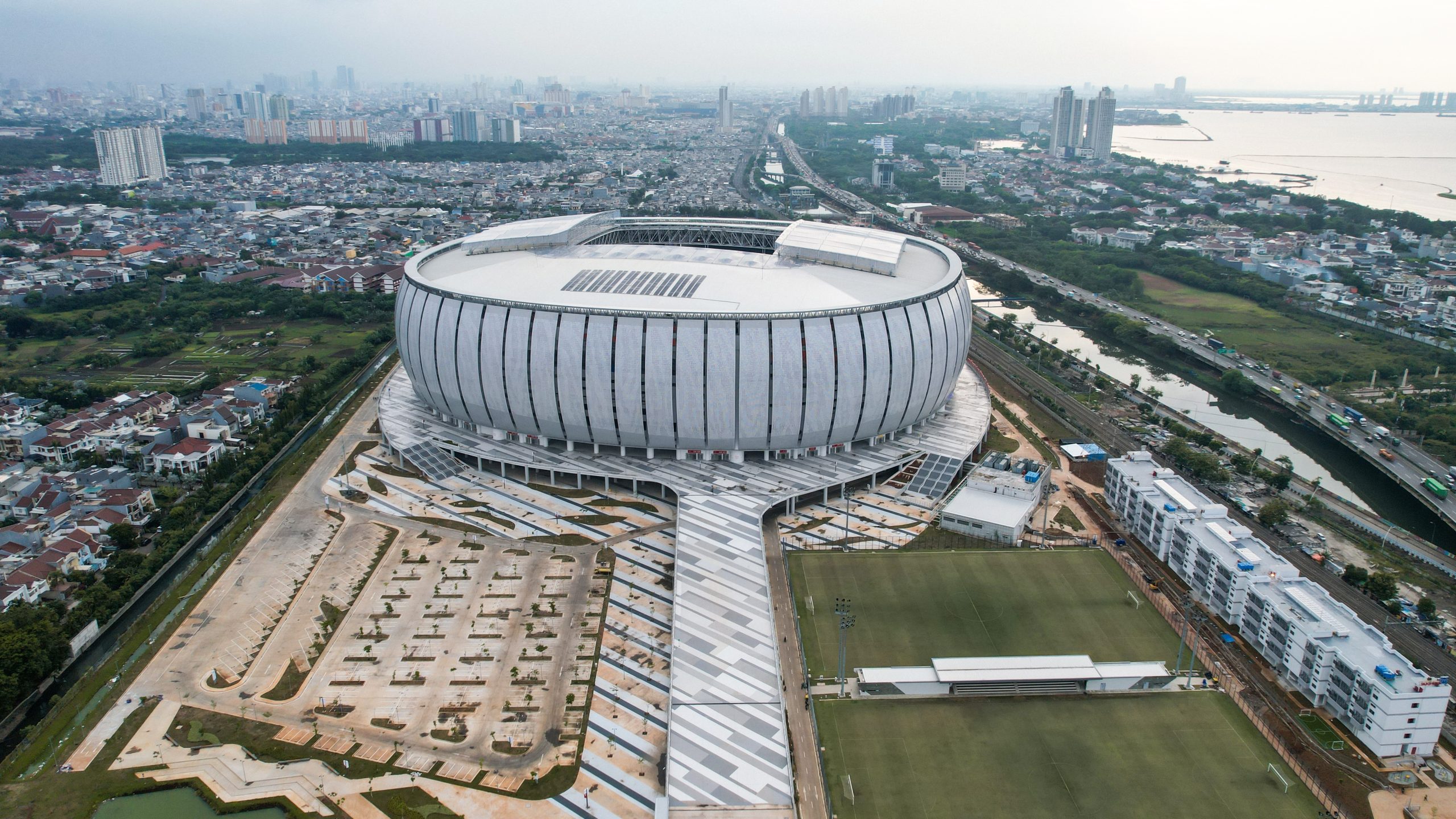 Sân vận động Quốc tế Jakarta là một kỳ quan kiến trúc tại Châu Á, gây ấn tượng mạnh mẽ bởi quy mô phi thường. Được biết đến là sân vận động lớn nhất Châu Á và lớn thứ hai tại Đông Nam Á, nơi đây cung cấp các cơ sở hạ tầng vô song cùng khả năng tùy biến linh hoạt đáng kinh ngạc. Một trong những đặc điểm nổi bật nhất của sân vận động này chính là khả năng điều chỉnh mái che theo nhu cầu sử dụng.