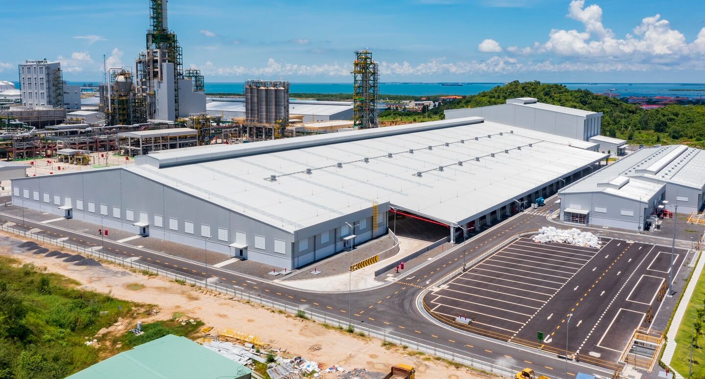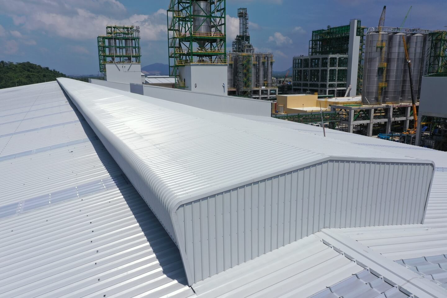 Công trình tổ hợp kép này có độ khó cao khi tập hợp đầy đủ các yếu tố ăn mòn là môi trường cận biển và hóa chất. Do đó, công trình có yêu cầu nghiêm ngặt đối với vật liệu cho hệ bao che: chống ăn mòn hiệu quả, đảm bảo độ bền. Để đáp ứng yêu cầu đó, dự án đã ứng dụng tôn COLORBOND® với công nghệ mạ AM – ACTIVATE™, mang lại hiệu quả vượt trội về chống ăn mòn, bảo đảm tuổi thọ công trình và duy trì giá trị thẩm mỹ bền vững.