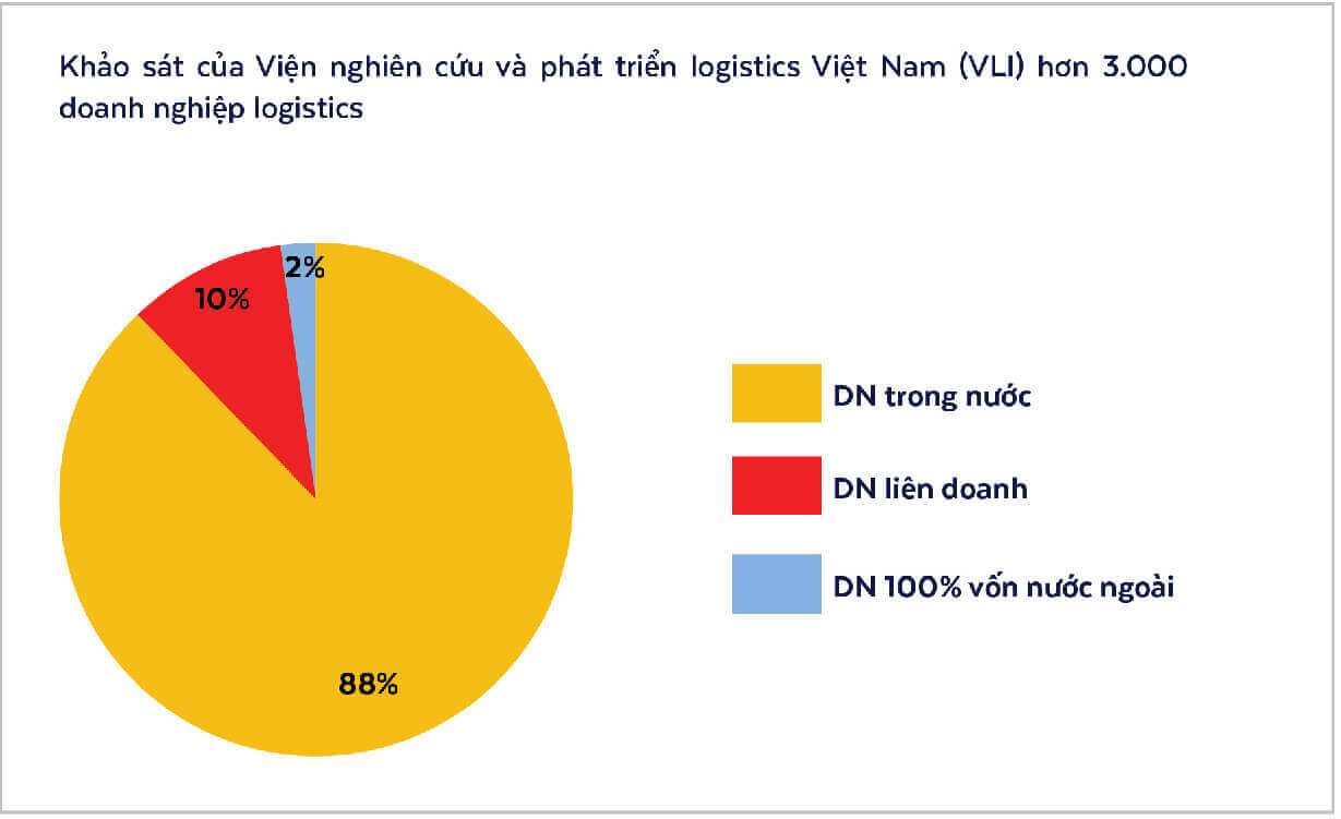 “Trước đây người ta vẫn thường hay nhìn nhận “sân chơi” logistics chủ yếu thuộc về doanh nghiệp ngoại bởi chỉ chiếm 5% tổng số doanh nghiệp nhưng họ lại chiếm thị phần nhiều hơn. Tuy nhiên, theo Khảo sát của Viện Nghiên cứu và phát triển logistics Việt Nam (VLI), trong số hơn 3.000 doanh nghiệp logistics thì doanh nghiệp trong nước chiếm 88%, chỉ có 10% là doanh nghiệp liên doanh và 2% là doanh nghiệp 100% vốn nước ngoài. Các công ty logistics nội địa cũng là ưu tiên hàng đầu của doanh nghiệp chủ hàng khi có tới 52,8% doanh nghiệp lựa chọn – cho thấy sự tin tưởng vào các nhà cung cấp dịch vụ logistics nội địa. Đặc biệt, trong hầu hết các lĩnh vực về khai thác cảng, kho bãi, vận tải đường bộ nội địa, vận tải đường thủy nội địa… doanh nghiệp nội đang chiếm ưu thế gần như tuyệt đối. Riêng vận tải bằng hàng không và vận đường tải biển doanh nghiệp Việt còn hạn chế do không có hãng hàng không lớn, kinh nghiệm khai thác cảng biển và đơn hàng quốc tế chưa nhiều” – Ông Hiệp phân tích.