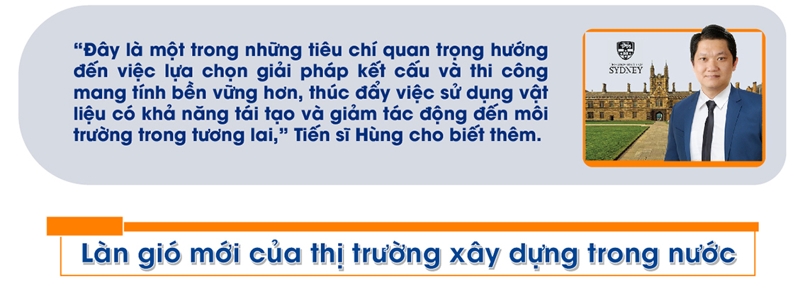 Cũng theo Tiến sĩ Hùng, hiện nay có rất nhiều qui chuẩn thiết kế cho kết cấu liên hợp, như bộ AISC 360-16 cho thị trường Mỹ hay Qui phạm EuroCodes 4 tại Châu Âu và bộ tiêu chuẩn AZ/NZS 2327:2017 của Úc.