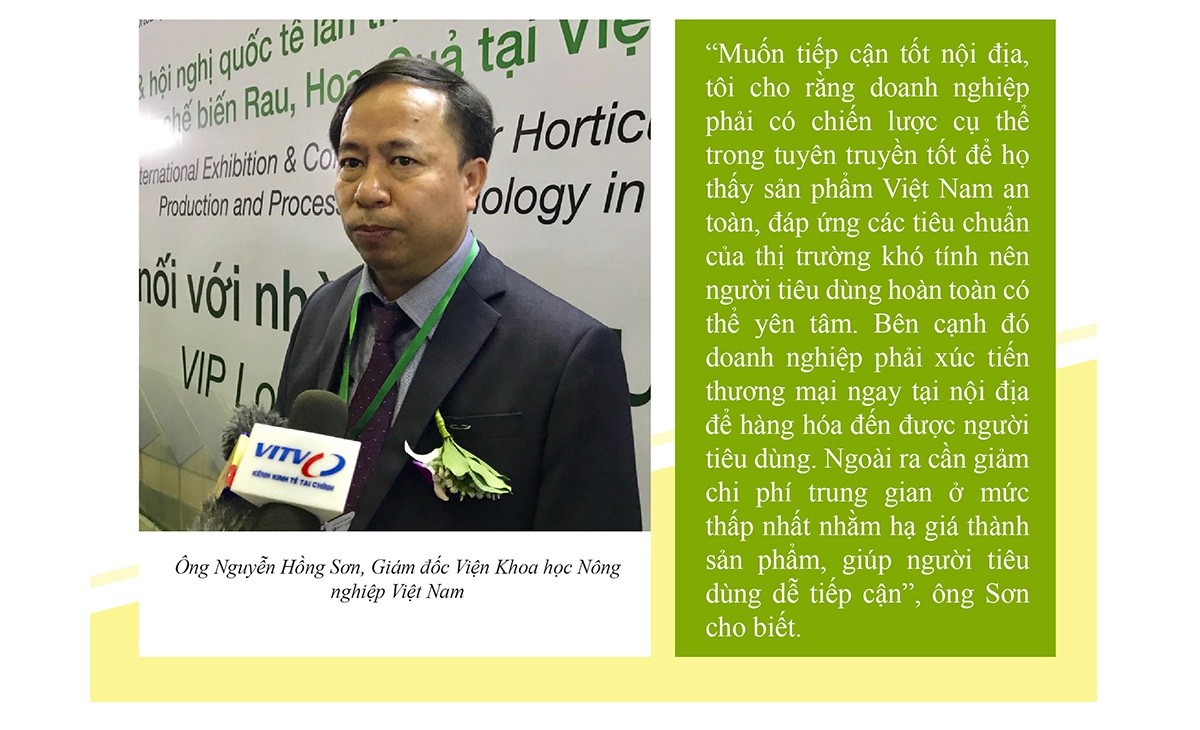 GS.TS Nguyễn Hồng Sơn, Giám đốc Viện Khoa học Nông nghiệp Việt Nam nhận xét, “Chúng ta phải tính toán kỹ tới nhu cầu thực sự ở thị trường trong nước, đừng nghĩ trong nước có yêu cầu với sản phẩm thấp, như vậy là sai lầm”. Hiện nay các thành phố lớn như TP. Hồ Chí Minh, Hà Nội… người tiêu dùng rất quan tâm đến chất lượng, đặc biệt là vấn đề vệ sinh an toàn thực phẩm. Họ có xu hướng tiêu thụ các sản phẩm ngoại vì cho rằng đó là mặt hàng có chất lượng tốt.