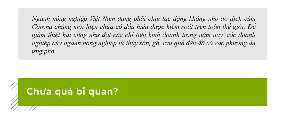 Mặc dù các chuyên gia và nhiều doanh nghiệp tỏ ra khá lạc quan song tác động của dịch cúm Corona với ngành nông nghiệp là điều khó tránh khỏi. Thực tế cho thấy, xuất khẩu hàng nông sản đang bị sụt giảm nghiêm trọng ở thị trường Trung Quốc, nhiều doanh nghiệp còn lo ngại khi dịch cúm đi qua, nhu cầu của thị trường ít nhiều sẽ sụt giảm. Trong bối cảnh đó, để giảm tối đa thiệt hại nhiều giải pháp ứng phó đã được các doanh nghiệp cấp bách đưa ra thực hiện.