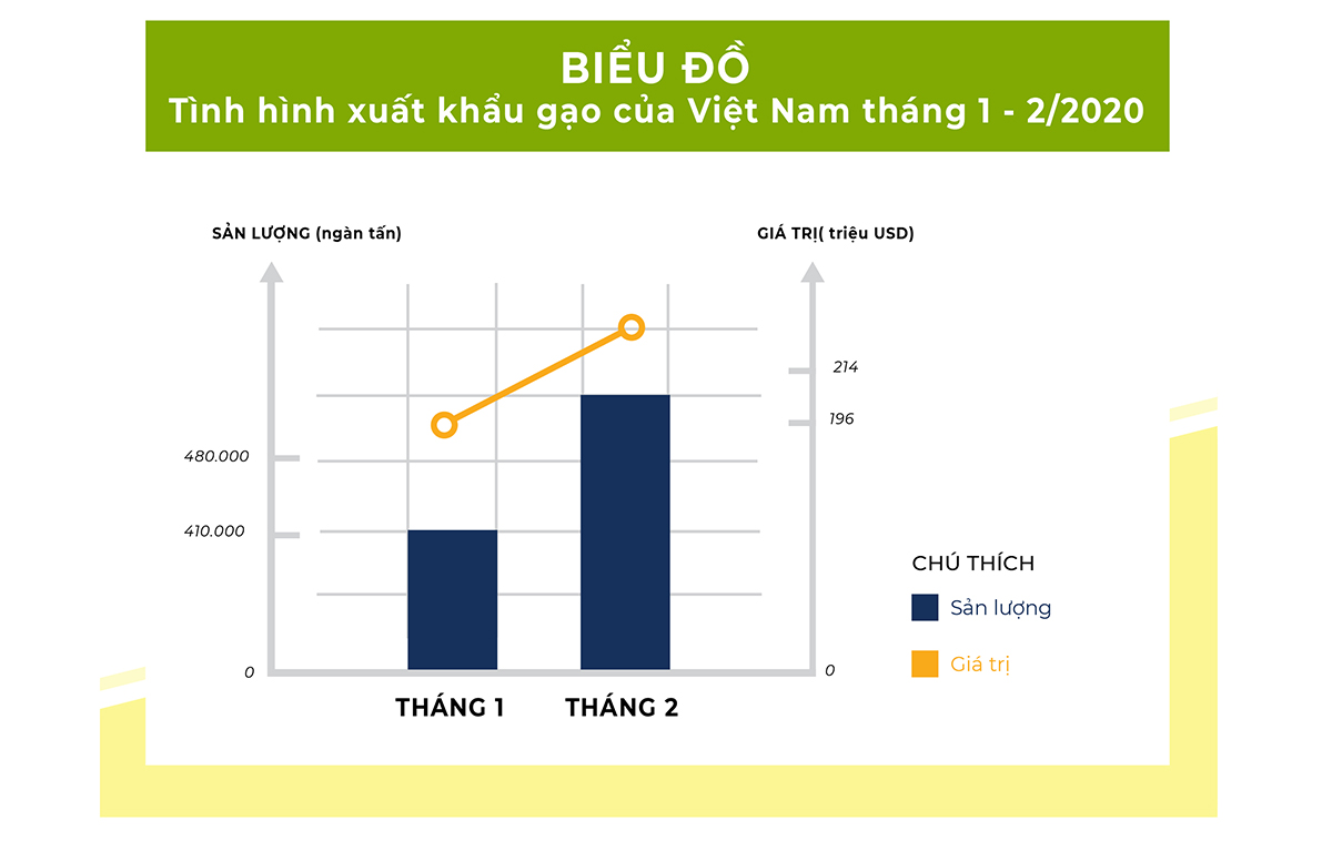 Đơn cử như với ngành hàng lúa gạo, trong cuộc họp bàn với 10 doanh nghiệp xuất khẩu đầu ngành này mới đây, ông Trần Quốc Khánh, Thứ trưởng Bộ Công Thương đánh giá: Tác động của dịch cúm với ngành gạo hiện chưa nhiều vì trong tháng 1 – 2020 dù rơi vào thời điểm nghỉ tết nhưng xuất khẩu gạo vẫn đạt trên 410 ngàn tấn, trị giá trên 196 triệu USD. Giảm 4,6% về lượng nhưng tăng 2,2% về giá trị. Đây là một tín hiệu đáng mừng. Ông Khánh cũng dự báo nhiều khả năng xuất khẩu gạo sẽ tăng tốt ở các tháng tới do tiêu thụ tại châu Phi khả quan còn nhu cầu nhập khẩu của Ấn Độ, Trung Quốc sẽ tương đương năm ngoái. Từ đó, Bộ Công Thương dự báo xuất khẩu gạo năm 2020 sẽ ở mức tương đương năm 2019, đạt khoảng trên 6 triệu tấn gạo.
