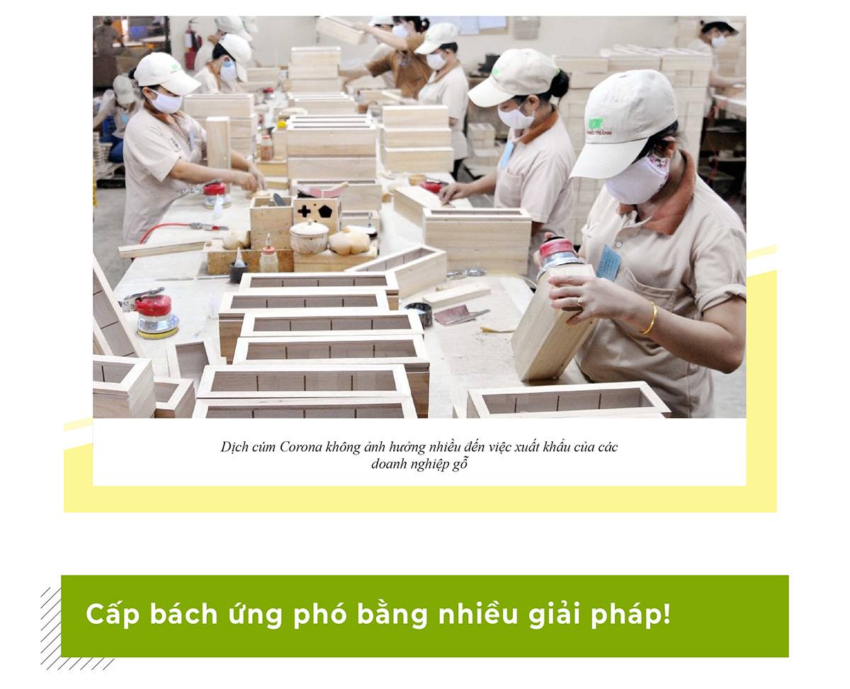 Tương tự với các doanh nghiệp gỗ, ông Nguyễn Liêm, Giám đốc Công ty Lâm Việt chia sẻ, dịch cúm Corona không ảnh hưởng nhiều đến việc xuất khẩu của các doanh nghiệp gỗ vì phần lớn sản phẩm gỗ và đồ gỗ của Việt Nam xuất sang các thị trường khác như Châu Âu, Hàn Quốc, Nhật Bản. Về nguồn nguyên phụ liệu cũng không ảnh hưởng nhiều, đa phần nguyên phụ liệu trong sản xuất đồ gỗ của các doanh nghiệp Việt là nhập từ Mỹ, Châu Âu, Đài Loan, Đức, Ý và một số thị trường khác có nguồn gốc gỗ bền vững.