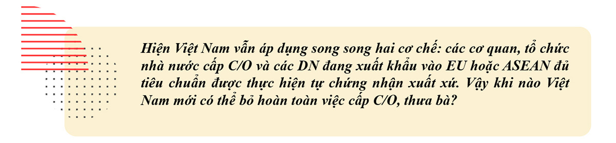 Như đã nêu ở trên, hiện tại chỉ có những DN lớn ở VN có thể thực hiện tự chứng nhận xuất xứ, mà 95% DN Việt Nam là các DN có quy mô vừa và nhỏ, do vậy việc bỏ hoàn toàn cơ chế cấp C/O vẫn cần một khoảng thời gian không ngắn để thực hiện, cho đến khi các DN có đủ khả năng tự thực hiện chứng nhận xuất xứ.