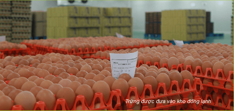 Trứng sau khi được đóng gói, sẽ được đưa vào kho lạnh bảo quản ở nhiệt độ 15 độ C trước khi đưa đến các hệ thống phân phối trong vòng 24h bằng phương tiện vận chuyển chuyên dụng.