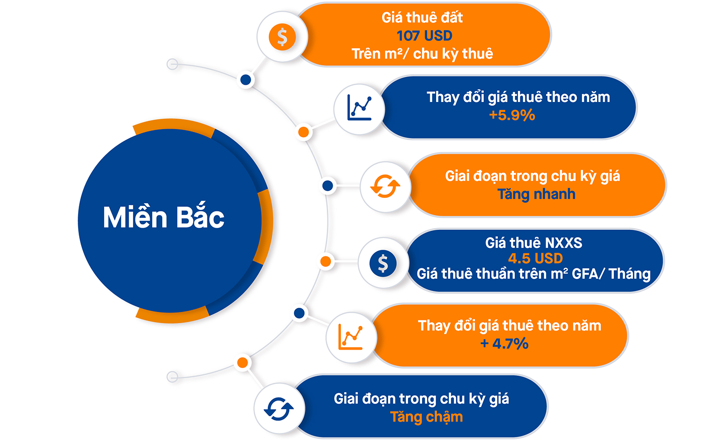 Trong khi đó, ở miền Bắc, theo JLL Việt Nam, với làn sóng Covid 19 bùng phát đã làm thị trường BĐS công nghiệp trở nên trầm lắng trong Q2/2021 khi thị trường không đón nhận dự án FDI nổi bật nào, chủ yếu là các dự án quy mô nhỏ. Vì thế, tỷ lệ lấp đầy của các KCN phía Bắc duy trì ở mức 75%; NXXS giảm so với Q1/2021 vì tổng số doanh nghiệp tạm dừng hoạt động trong 6 tháng đầu năm nay tăng 22% so với cùng kì.