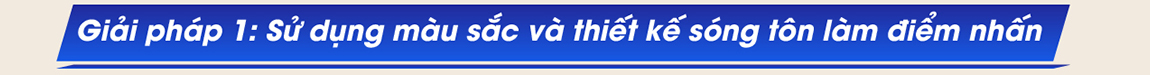 Giải pháp này dù không đổi hình dáng, kích thước của nhà xưởng nhưng thay vào đó, NS BlueScope Lysaght vận dụng màu sắc để tạo điểm nhấn. Có thể là chạy chỉ màu, đường diềm hay trang trí các mảng tường.
