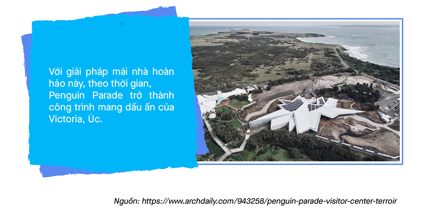 Trung tâm Penguin Parade là một biểu tượng mới tại Victoria, Úc với kiến trúc độc đáo. Công trình đã nhận được nhiều giải thưởng như giải thưởng của Viện Kiến trúc Úc năm 2020, giải thưởng William Wardell dành cho Kiến trúc Công cộng tại Victoria, giải thưởng Kiến trúc Thế giới …