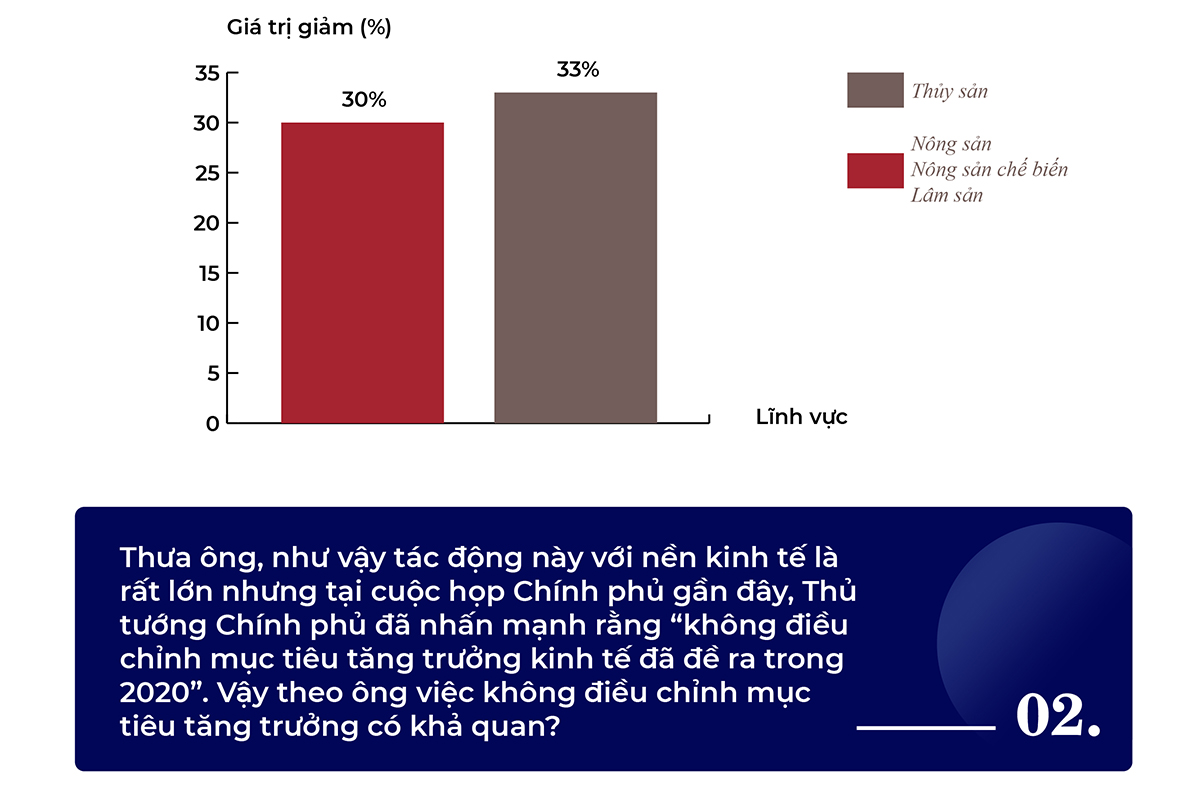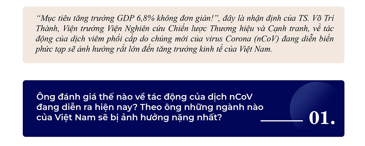 - Tôi cho rằng diễn biến của dịch này vẫn còn chưa rõ bao giờ giảm hay bao giờ mới kết thúc. Thế nên, sẽ có những tác động tiêu cực có thể còn lớn hơn. Chẳng hạn, chỉ xét tác động ngay trong quý I/2020 thì theo các tính toán sơ bộ, nếu Việt Nam muốn đạt mục tiêu đề ra về tăng trưởng GDP là 6,8% sẽ không đơn giản. Để đạt mức tăng trưởng này các quý sau phải tăng cao hơn rất nhiều.