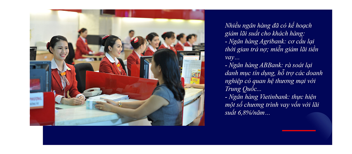 - Theo tinh thần đó, Ngân hàng Nhà nước yêu cầu hệ thống ngân hàng thương mại cần chủ động nắm bắt tình hình sản xuất, kinh doanh, mức độ thiệt hại của khách hàng đang vay vốn do ảnh hưởng của dịch nCoV để kịp thời áp dụng các biện pháp hỗ trợ, tháo gỡ khó khăn cho khách hàng như cơ cấu lại thời hạn trả nợ, xem xét miễm giảm lãi vay… theo quy định hiện hành. Mặt khác, phối hợp với các Sở, ban, ngành kịp thời tham mưu cho UBND tỉnh, thành phố các giải pháp xử lý rủi ro, hỗ trợ tháo gỡ khó khăn cho doanh nghiệp, người dân vay vốn bị thiệt hại theo quy định. Trong đó bảo đảm tránh việc lợi dụng cơ chế hỗ trợ làm ảnh hưởng tới thị trường tín dụng và việc phân loại, xử lý nợ xấu. Thực hiện chủ trương này, nhiều Ngân hàng thương mại đã lập tức vào cuộc, giảm lãi suất, cơ cấu lại nợ cho những khách hàng bị ảnh hưởng bởi dịch nCoV.