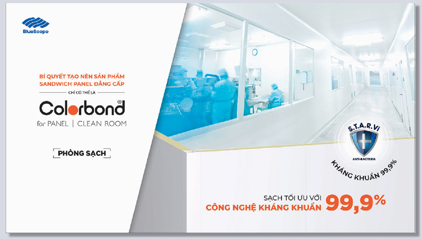 Một tiêu chí quan trọng đối với phòng sạch là khả năng kiểm soát vi khuẩn ở trong mức cho phép để đảm bảo cho công tác nghiên cứu, phát triển và sáng tạo sản phẩm. NS BlueScope Việt Nam đã giới thiệu đến thị trường dòng tôn mạ màu COLORBOND® for Panel | Clean Room kháng khuẩn bề mặt đến 99,9% nhờ Công nghệ S.T.A.R.Vi – một điều mà chưa có ứng dụng sandwich panel nào hiện tại trên thị trường có khả năng làm được. Công nghệ này cho phép vô hiệu hóa khả năng phát triển và sinh sôi của vi khuẩn, hiệu quả trên cả chủng khuẩn Gram (-) và (+).