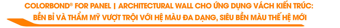 Khí hậu nhiệt đới nóng ẩm của Việt Nam cùng chỉ số tia cực tím UV cao là một trong các nguyên nhân khiến công trình nhanh bị phai màu, ảnh hưởng lớn đến độ thẩm mỹ của công trình. Đi tìm lời giải cho bài toán “đẹp bền vững”, NS BlueScope Việt Nam tích hợp hệ sơn cao cấp thế hệ mới siêu bền cho dòng sản phẩm COLORBOND® for Panel | Architectural Wall. Hệ sơn cung cấp khả năng chống phai màu, phấn hóa, chống ố và duy trì độ bóng vượt trội ngay cả trong điều kiện khắc nghiệt, đảm bảo màu sắc sống động lâu dài. Đặc biệt, màu metallic với hiệu ứng ánh kim cho chiều sâu và điểm nhấn mạnh mẽ về thẩm mỹ.