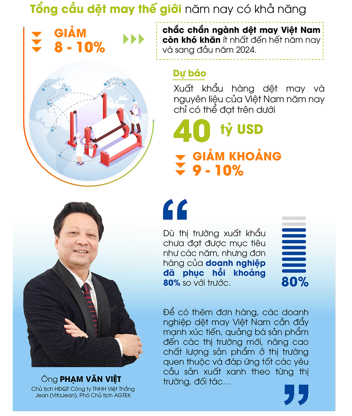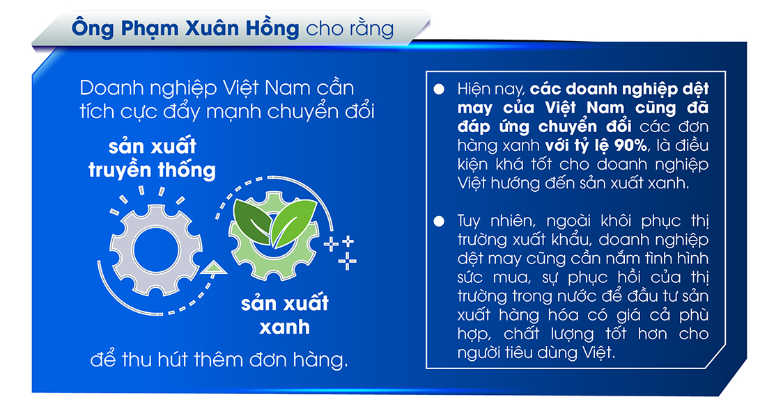 Ông Trần Ngọc Liêm, Giám đốc Liên đoàn Thương mại và Công nghiệp Việt Nam – Chi nhánh TP. Hồ Chí Minh, cũng cho rằng đã xuất hiện một số tín hiệu hồi phục và cơ hội phát triển của ngành dệt may.
